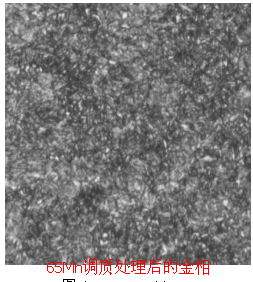 3、金相組織。65Mn圓鋼出廠時(shí)是沒(méi)有經(jīng)過(guò)調(diào)質(zhì)處理的,其進(jìn)組織主要是鐵素體和珠光體,但是經(jīng)過(guò)調(diào)質(zhì)處理后,起金相組織發(fā)生了非常大的變化,成了馬氏體和碳化物,組織變得更加細(xì)膩。